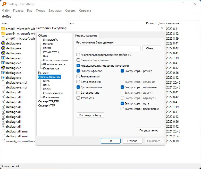 Программа не индексирует содержимое файлов, что обеспечивает скорость и экономию ресурсов.