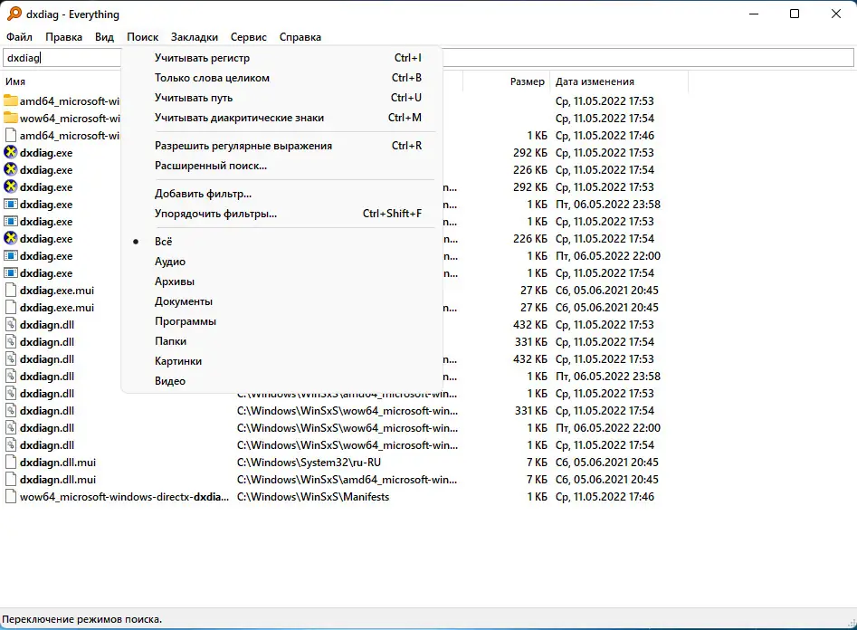 Работа с Everything