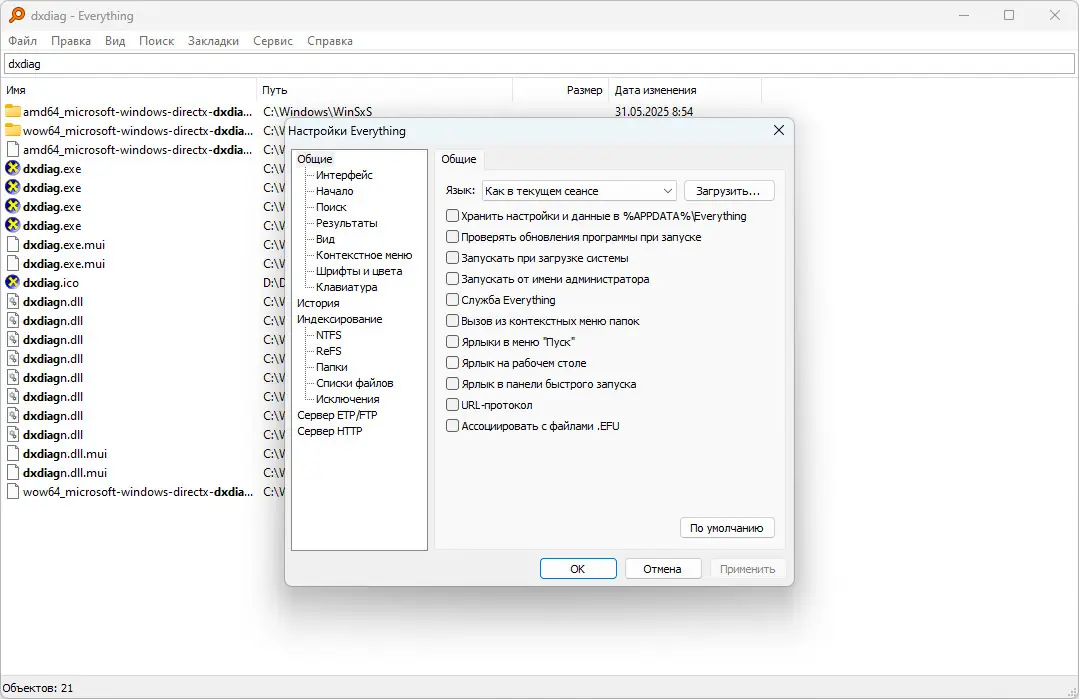 Работа с Everything