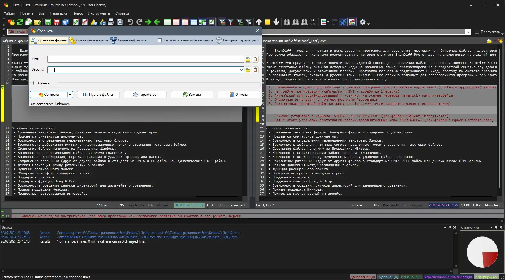 ExamDiff представляет собой специализированное приложение для детального сравнения содержимого файлов и директорий. Оно позволяет выявлять различия между двумя версиями документа, будь то исходный код, конфигурационный файл или двоичный образ. Программа поддерживает широкий спектр форматов и кодировок, обеспечивая корректную работу с многоязычными текстами. Её архитектура оптимизирована для быстрого анализа даже больших объёмов данных.