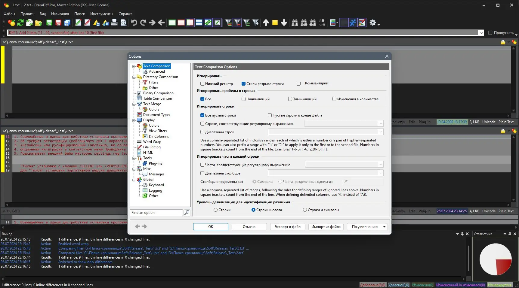 - Экспорт результатов в универсальные форматы, такие как UNIX DIFF и HTML, для последующего анализа или документирования.