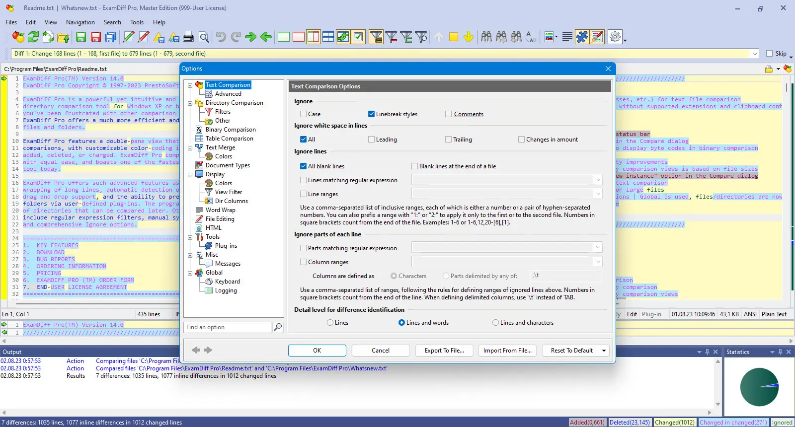 Точность анализа и гибкость настроек делают ExamDiff незаменимым при работе с версионными изменениями