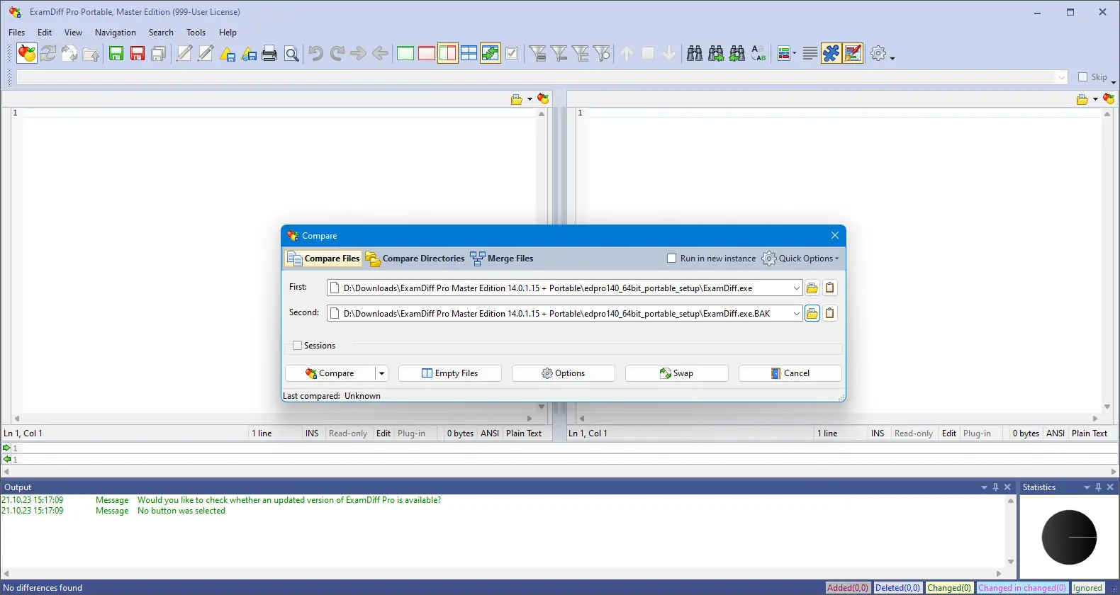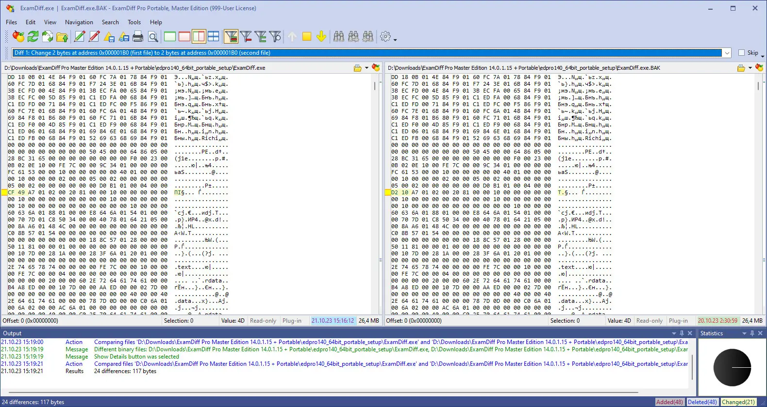 ExamDiff — это высокопроизводительный инструмент для сравнения текстовых и бинарных файлов, а также каталогов, разработанный с учётом потребностей программистов и системных администраторов. Программа сочетает в себе простоту интерфейса и широкий функционал, включая подсветку синтаксиса, поддержку Юникода и экспорт результатов в HTML и UNIX DIFF. Благодаря точному выявлению различий и удобной навигации, ExamDiff pro эффективно помогает отслеживать изменения в исходных кодах, конфигурационных файлах и документах.
