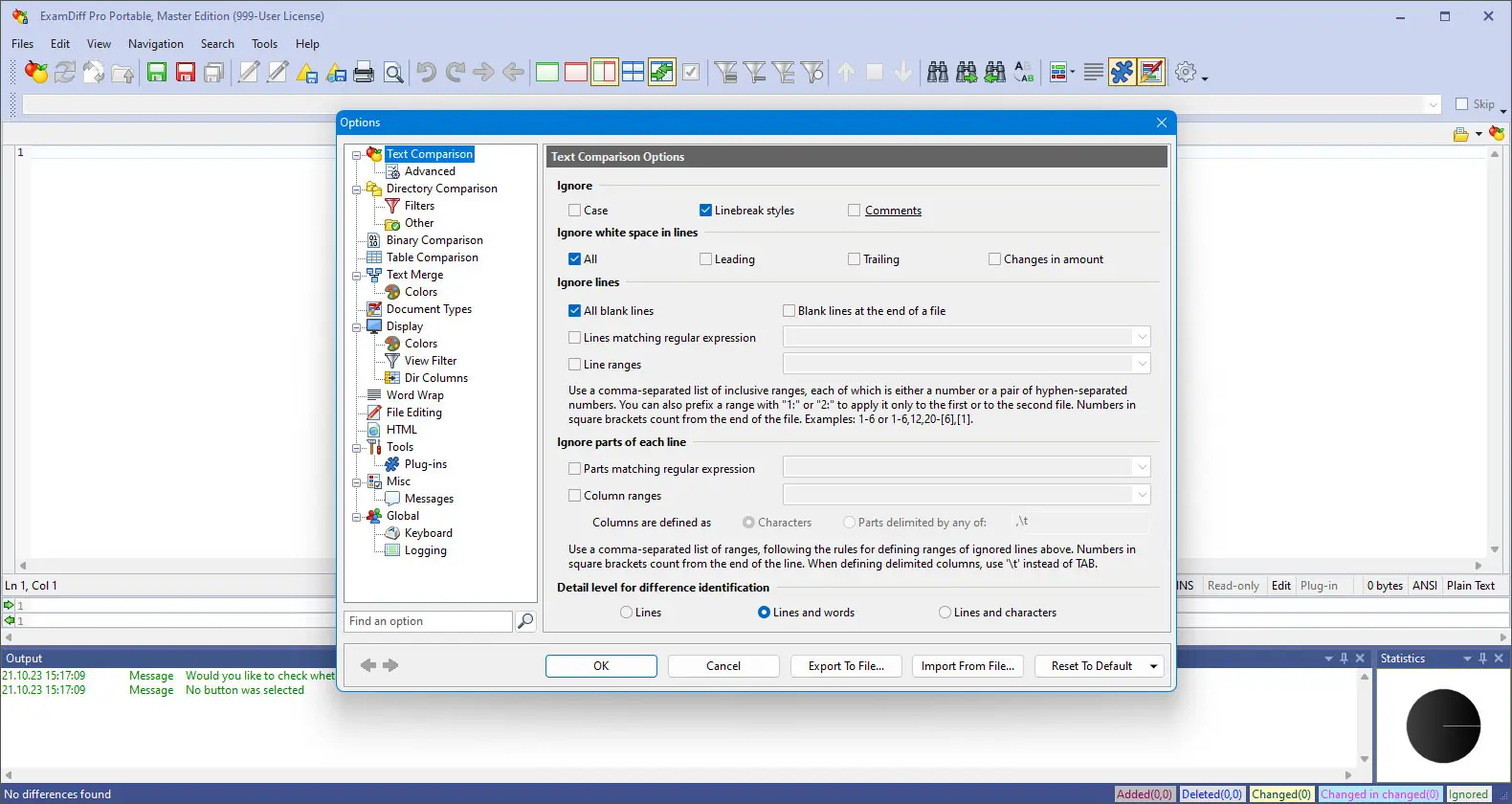 - Экспорт результатов в стандартные форматы: UNIX DIFF и интерактивные HTML-отчёты.