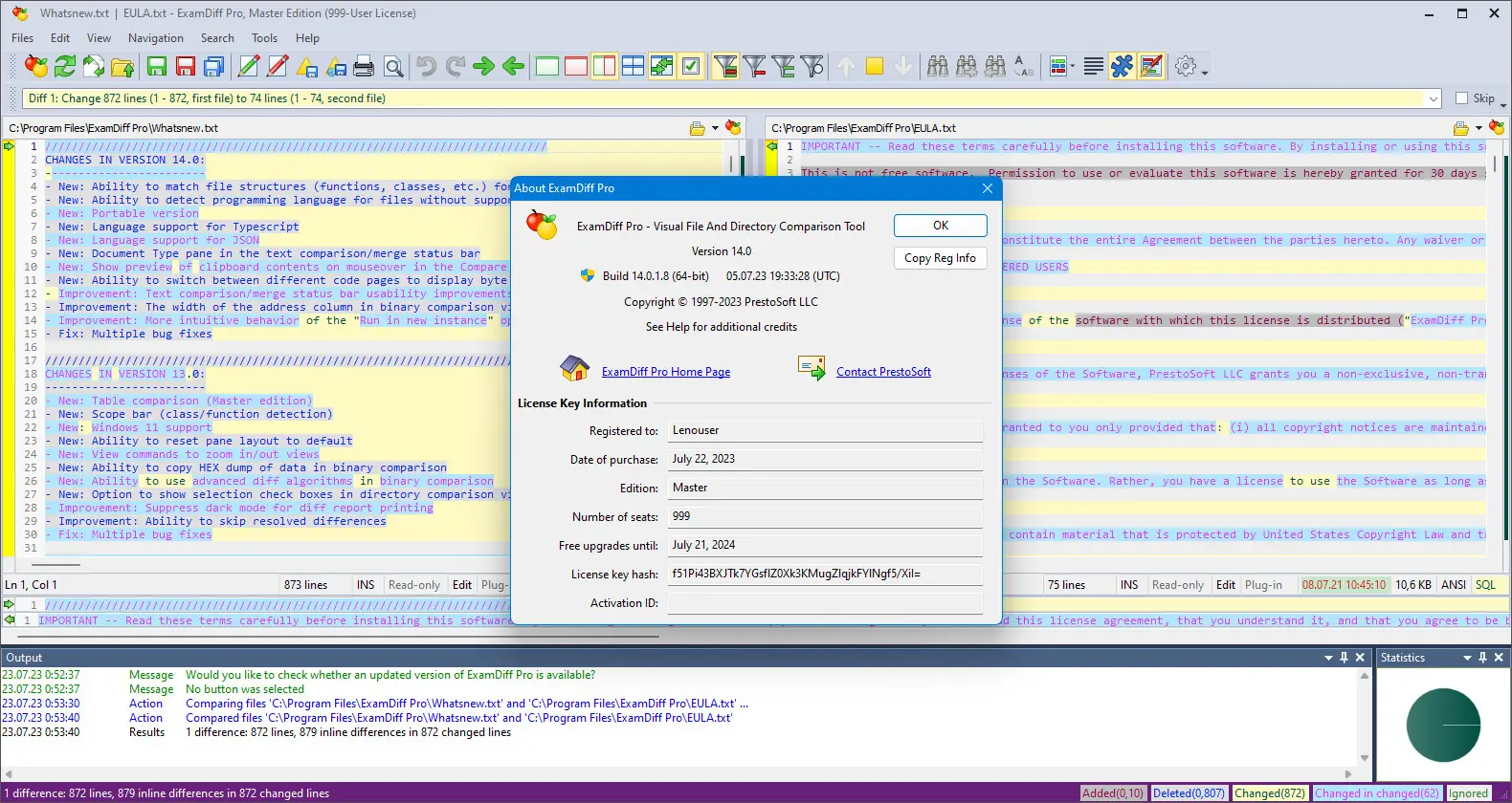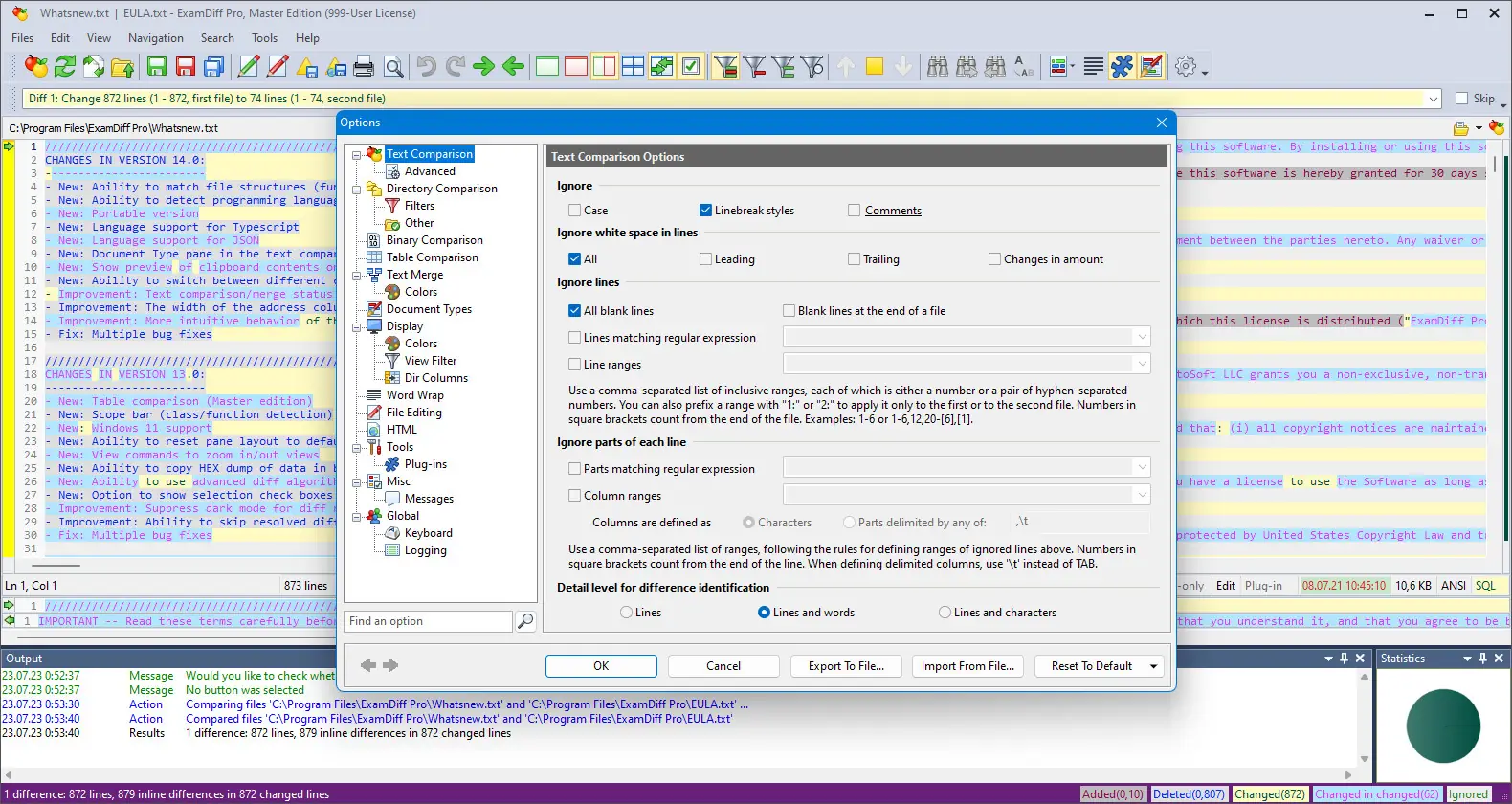 ExamDiff обеспечивает высокую точность при сравнении даже сильно изменённых версий файлов благодаря продвинутым алгоритмам анализа.