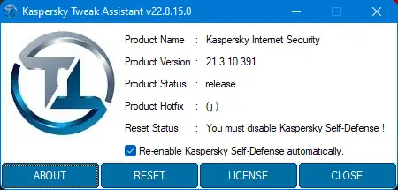 Kaspersky Tweak Assistant — утилита, предназначенная для продления триального периода продуктов компании «Лаборатория Касперского». Программа автоматически сканирует систему, обнаруживает установленные версии антивирусного ПО и сбрасывает оставшееся время лицензии, позволяя использовать продукт ещё на 30 дней бесплатно. Поддерживает широкий спектр версий, включая актуальные релизы до 2024 года включительно.