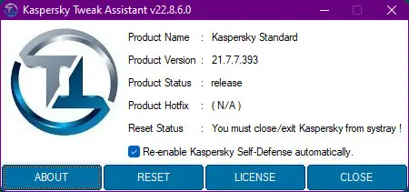 Kaspersky Tweak Assistant — утилита для продления пробного периода продуктов линейки Kaspersky. Программа автоматически обнаруживает установленное ПО от разработчика и сбрасывает таймер использования, позволяя снова воспользоваться функционалом на 30 дней. Поддерживает версии программ с 2019 по 2021 год, включая основные и корпоративные редакции. Утилита компактна, не требует установки и работает в фоне без вмешательства в системные процессы. Подходит для временного использования антивирусного решения без приобретения лицензии.