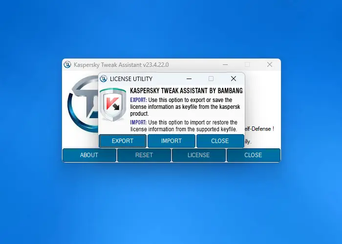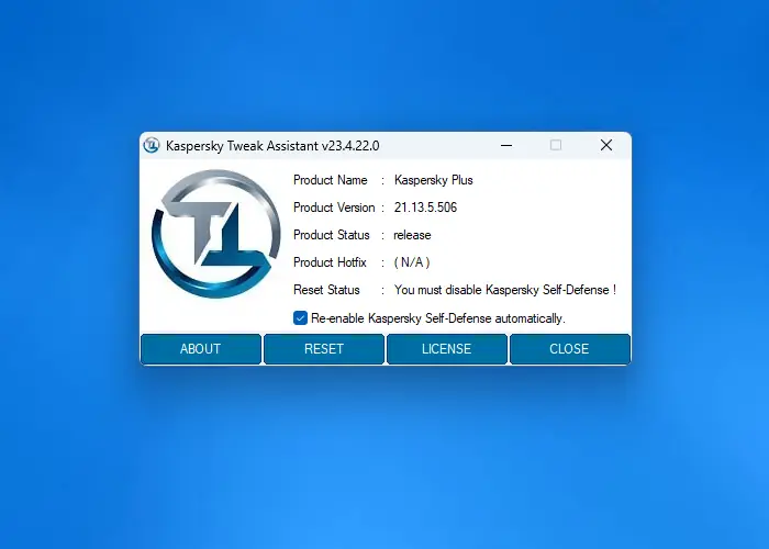 Kaspersky Tweak Assistant — это утилита, предназначенная для управления пробными периодами антивирусных решений от компании Kaspersky. Программа помогает продлить использование продуктов с триальной лицензией, выполняя сброс оставшегося времени до истечения срока. Инструмент автоматизирует процесс, позволяя повторно активировать 30-дневный пробный период без необходимости приобретения лицензии. Работает с рядом версий антивирусов, включая актуальные на 2024 и 2025 годы.