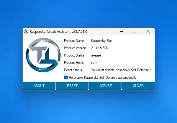 Kaspersky Tweak Assistant — утилита, предназначенная для продления триального периода антивирусных продуктов компании Kaspersky. Инструмент автоматизирует процесс сброса пробного срока и поддерживает широкий список версий защитного ПО, включая актуальные релизы. Программа проста в использовании и не требует глубоких технических знаний.