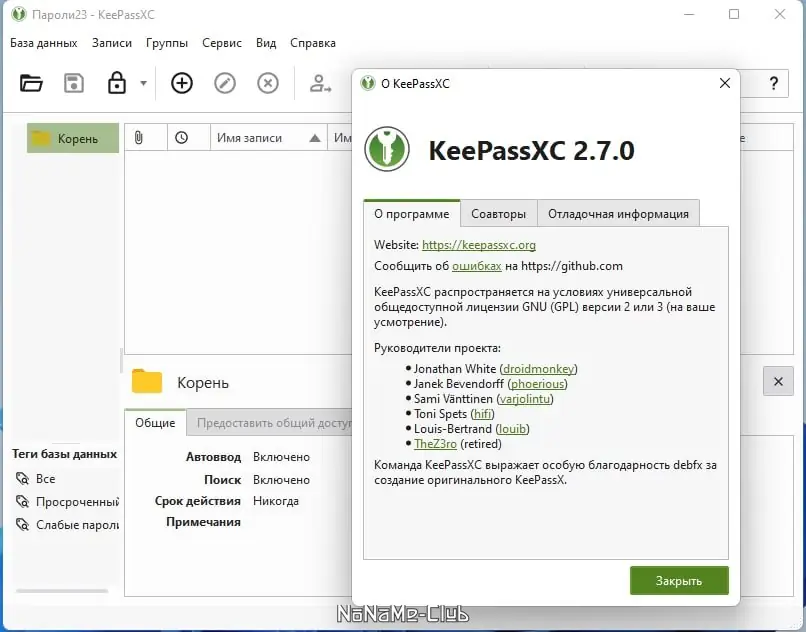 KeePassXC — это открытая и кроссплатформенная утилита, предназначенная для хранения паролей, ключей, заметок и другой конфиденциальной информации в зашифрованной базе данных. Проект был создан как ответвление от KeePassX с целью ускорить развитие функционала и устранить давние недостатки оригинального проекта. Благодаря активной поддержке сообщества, программа регулярно обновляется, получая новые инструменты и улучшения безопасности.