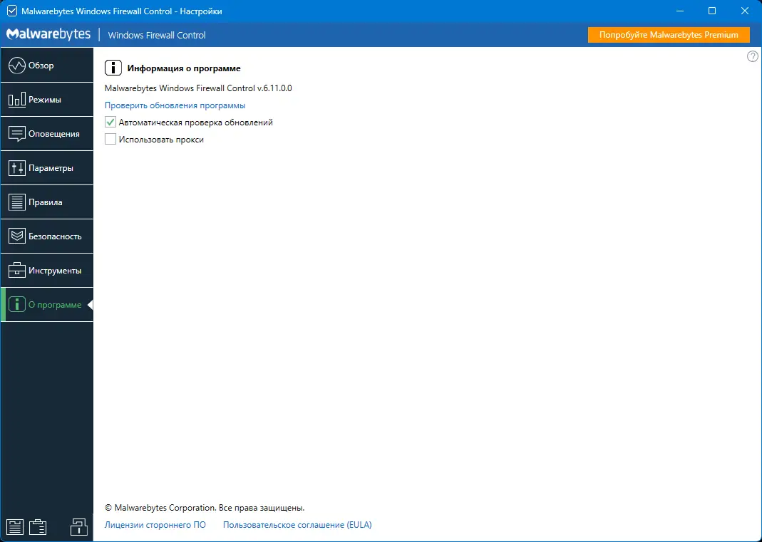 Malwarebytes Firewall Control — это компактное приложение, расширяющее возможности стандартного брандмауэра Windows. Оно даёт пользователю точный контроль над сетевыми подключениями, включая возможность блокировать или разрешать доступ к интернету для любого приложения. Утилита не требует установки и работает как из портативной версии, так и в режиме автозагрузки.
