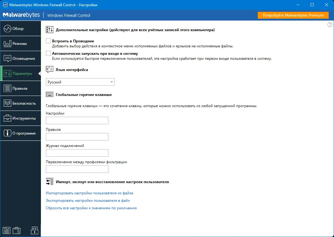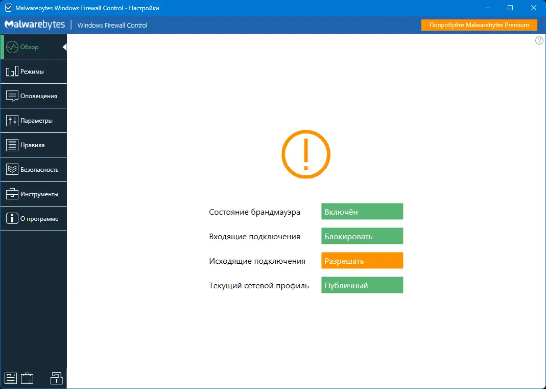 Malwarebytes Firewall Control — утилита для расширенного управления встроенным брандмауэром Windows, позволяющая быстро настраивать сетевые правила, контролировать соединения приложений и импортировать или экспортировать политики безопасности. Программа работает в фоне и обеспечивает доступ к ключевым функциям через системный трей.