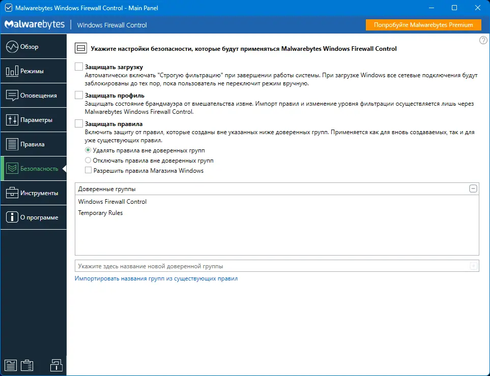 Как пользоваться Malwarebytes Firewall Control