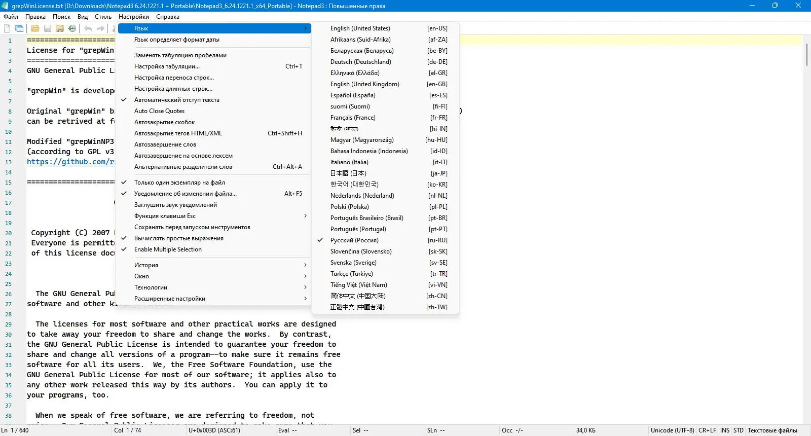 Работа с Notepad3