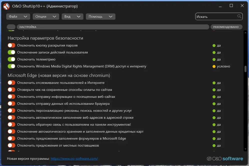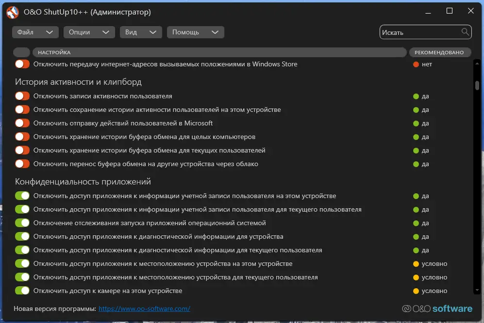 Как пользоваться O&O ShutUp10