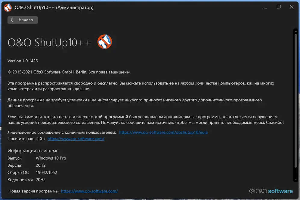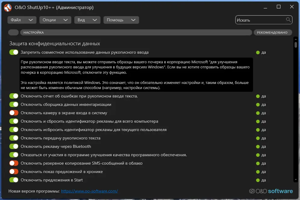 Описание O&O ShutUp10