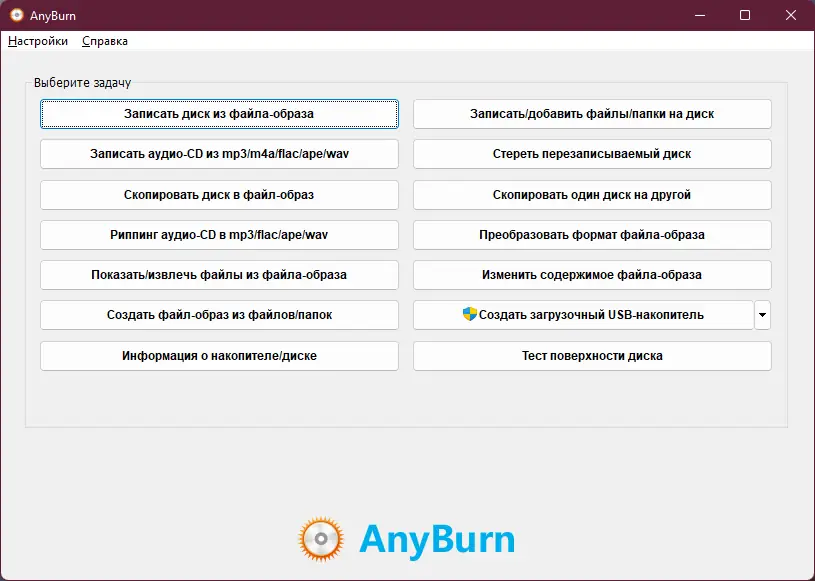AnyBurn — это решение для всех, кто регулярно работает с оптическими носителями и образами дисков. Утилита не требует установки мощного оборудования и отлично справляется даже на старых компьютерах. Она поддерживает запись данных, создание резервных копий, риппинг аудио и преобразование форматов, обеспечивая стабильность и скорость.