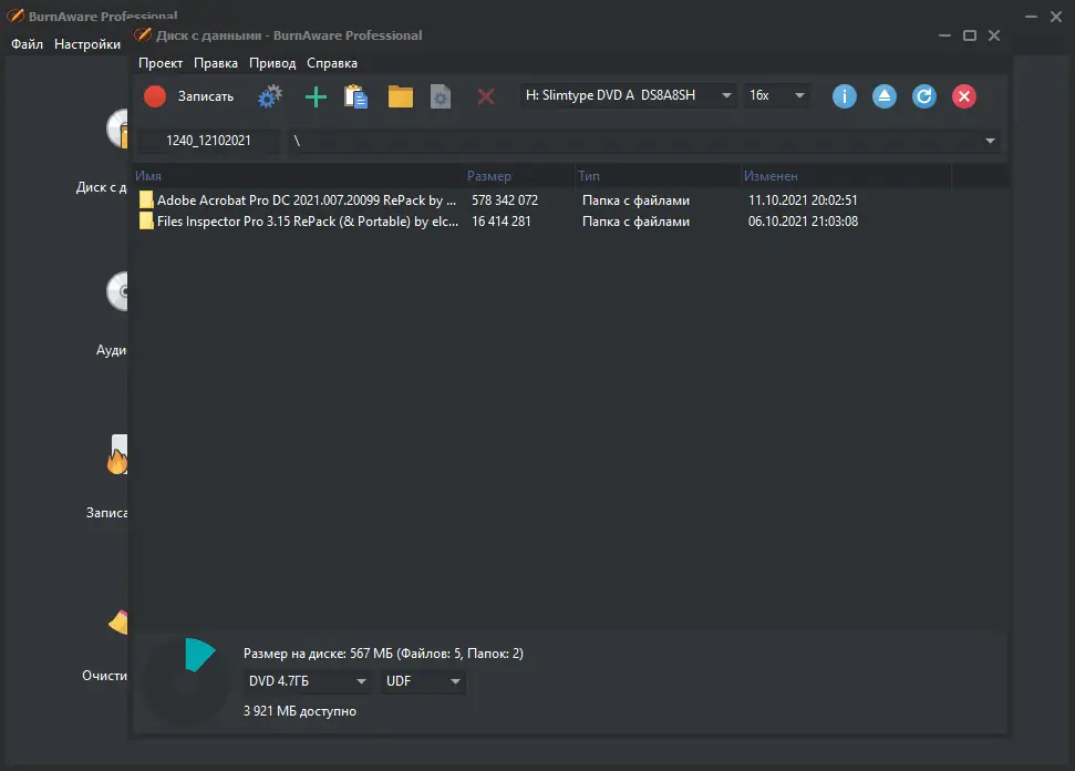 Работа с BurnAware