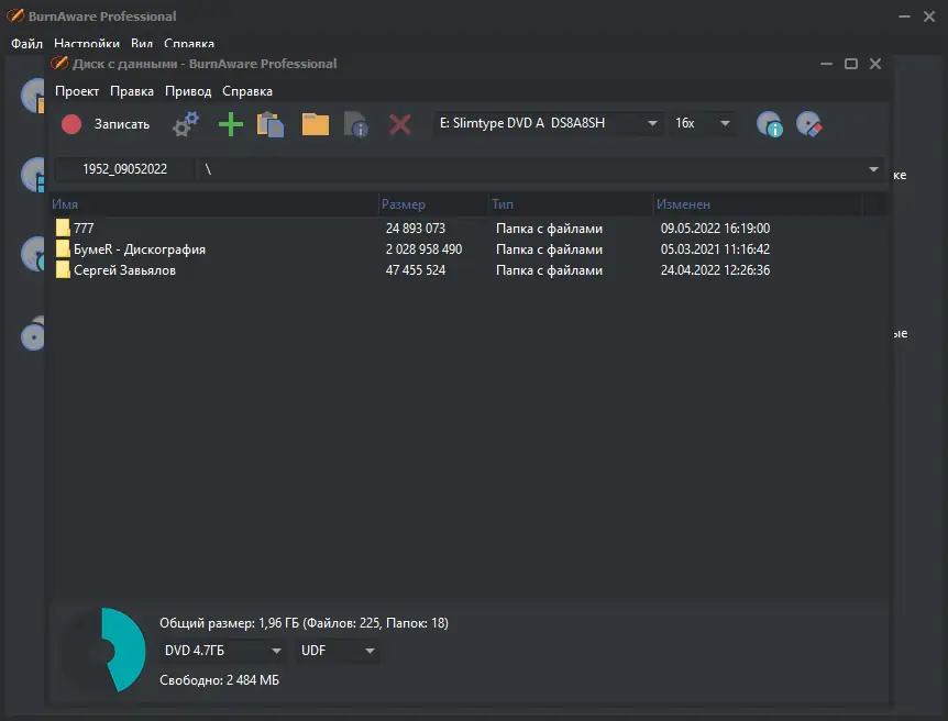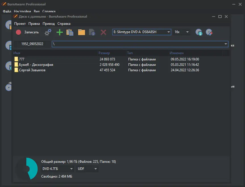 - Работа в мультисессионном режиме, что позволяет добавлять данные на перезаписываемые диски.