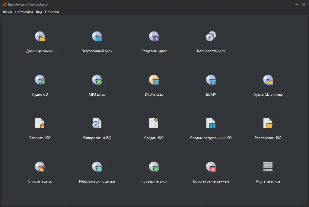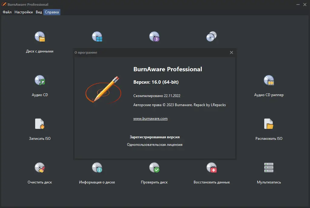 BurnAware — это надежное программное обеспечение для записи, копирования и работы с образами дисков, поддерживающее широкий спектр носителей, включая CD, DVD, Blu-Ray и HD-DVD. Программа сочетает в себе простоту интерфейса и мощные функции, необходимые как для повседневного использования, так и для профессиональных задач. С её помощью можно создавать резервные копии данных, записывать музыку и видео, а также работать с образами файлов различных форматов.