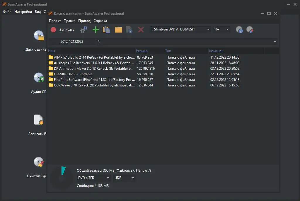 Работа с BurnAware