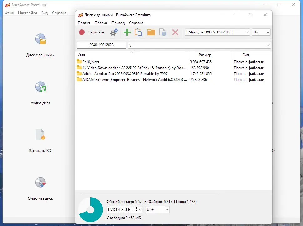 Работа с BurnAware
