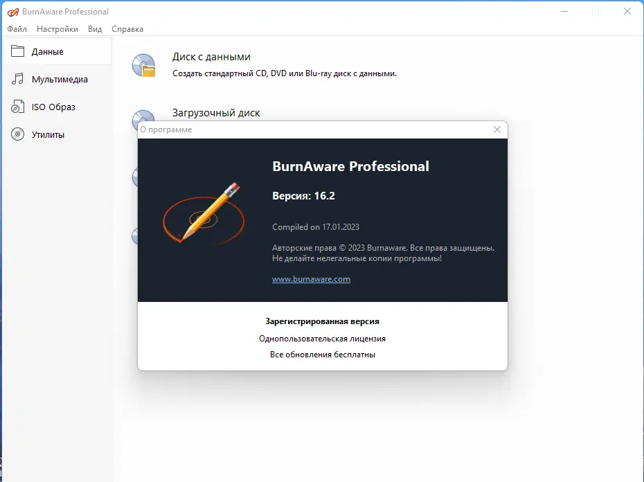 BurnAware — это универсальное решение для записи, копирования и управления оптическими дисками и образами. Программа поддерживает все популярные форматы носителей, включая CD, DVD, Blu-Ray и HD-DVD, обеспечивая надёжное создание дисков с данными, музыкой, видео и резервными копиями. С её помощью можно легко создавать загрузочные диски, записывать аудиоальбомы, клонировать диски и работать с образами. Интерфейс интуитивно понятен, а функционал охватывает как базовые, так и продвинутые задачи в области прожига. Подходит как для новичков, так и для опытных пользователей, нуждающихся в стабильной и эффективной утилите. Программу можно скачать бесплатно в портативной или установленной версии.