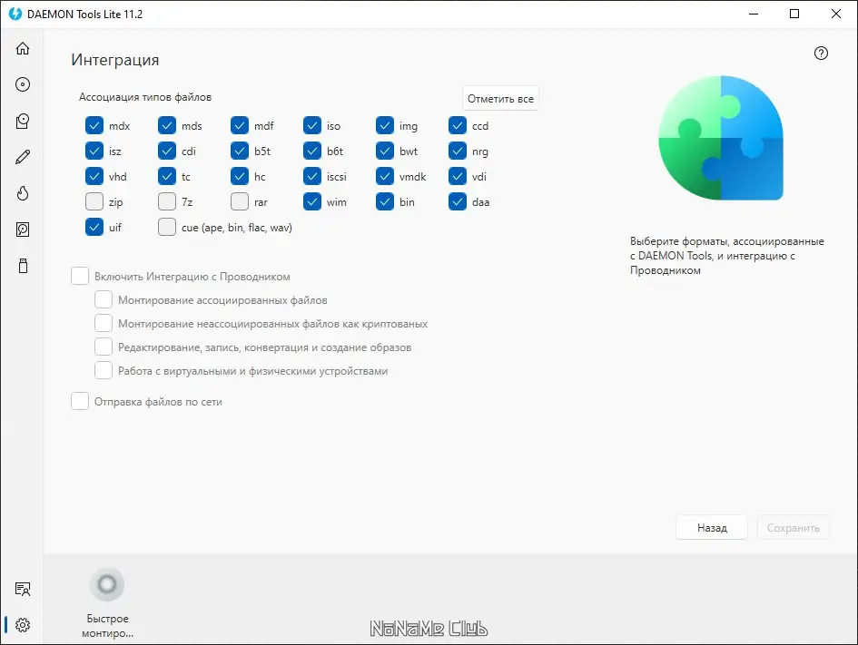 - Быстрое подключение и отключение виртуальных приводов без перезагрузки ПК