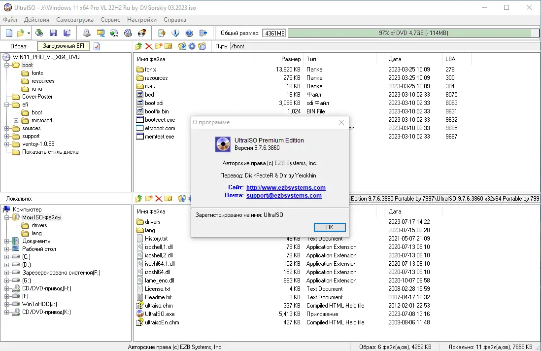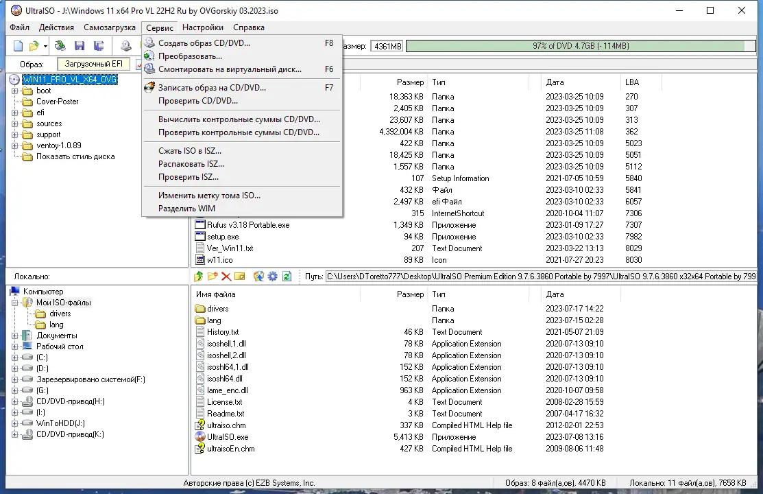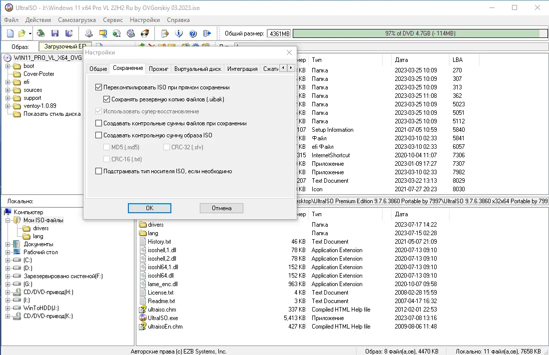 - Прямое редактирование содержимого образа: добавление, удаление, переименование файлов