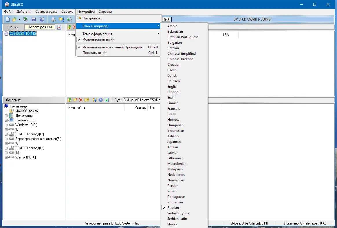 UltraISO — мощное приложение для создания, редактирования и записи образов дисков. Программа поддерживает множество форматов, включая ISO, BIN, NRG и другие, а также позволяет создавать загрузочные носители, в том числе для установки Windows 10. Работа с образами становится проще благодаря интуитивному интерфейсу и расширенным функциям редактирования без распаковки.