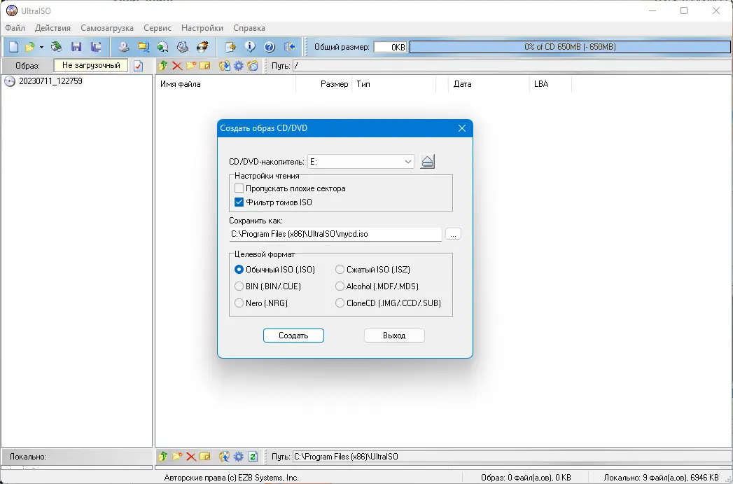 UltraISO — мощное приложение для создания, редактирования и записи образов дисков. Программа поддерживает множество форматов и позволяет работать с ними без распаковки, включая создание загрузочных носителей и конвертацию файлов. Подходит как для обычных пользователей, так и для системных администраторов, которым нужно быстро преобразовать или модифицировать образ.