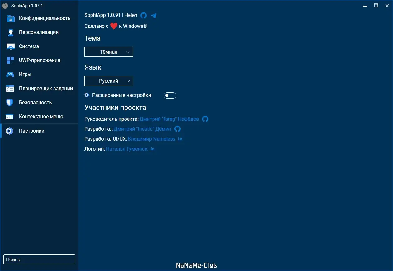 SophiApp представляет собой графическое приложение, разработанное как преемник легендарного скрипта Sophia Script for Windows. Оно создано с использованием современных подходов программирования, включая паттерн MVVM и многопоточную архитектуру, что обеспечивает стабильность и отзывчивость интерфейса. Программа ориентирована на пользователей, стремящихся к максимальной персонализации и оптимизации своих систем, при этом сохраняя их целостность и безопасность.