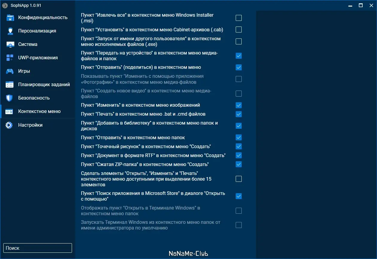 SophiApp — это современный, полностью открытый инструмент для тонкой настройки операционных систем Windows 10 и Windows 11. Программа предлагает более 130 настроек, реализованных через официальные, документированные методы Microsoft, что исключает риск повреждения системы. Интерфейс отличается высокой отзывчивостью, поддерживает темную и светлую темы, адаптируясь под системные настройки. Все изменения отображаются в реальном времени, а каждая функция сопровождается описанием и текущим статусом.