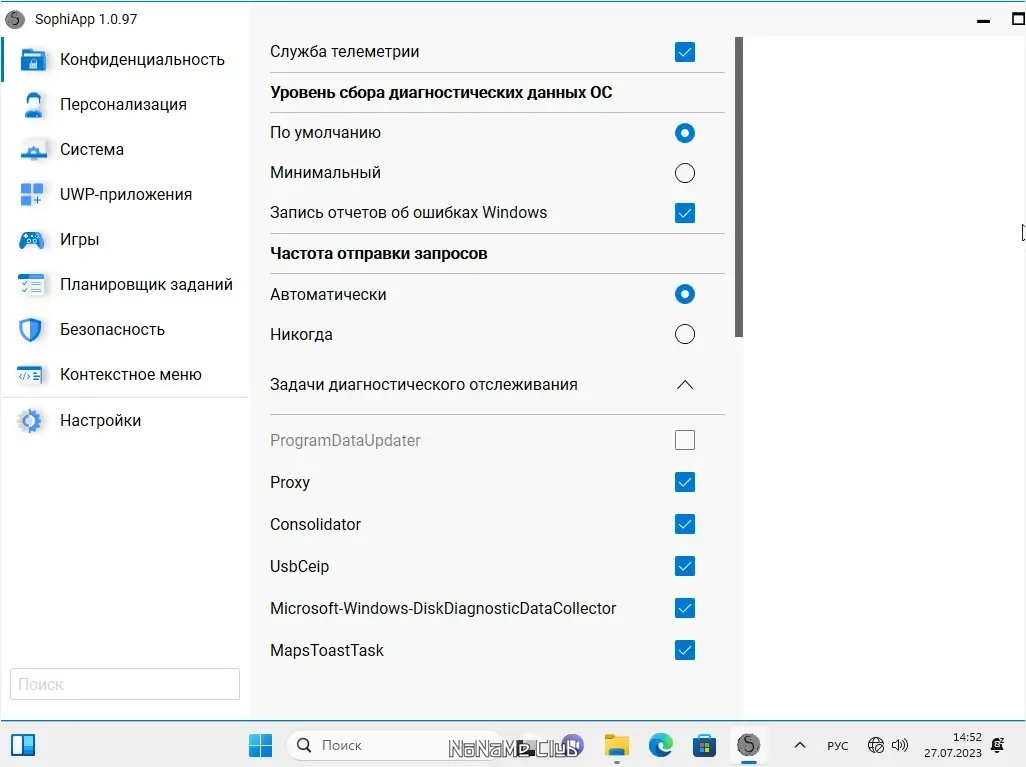 - Программа поддерживает тонкую настройку, включая персонализацию интерфейса, управление приватностью и отключение телеметрии.