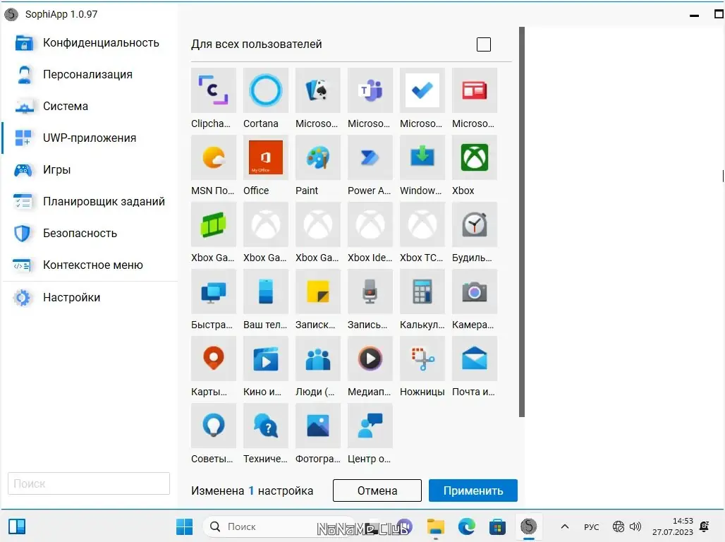 - Работа с UWP-приложениями осуществляется с отображением локализованных названий и иконок, что делает удаление нежелательных программ максимально интуитивным.