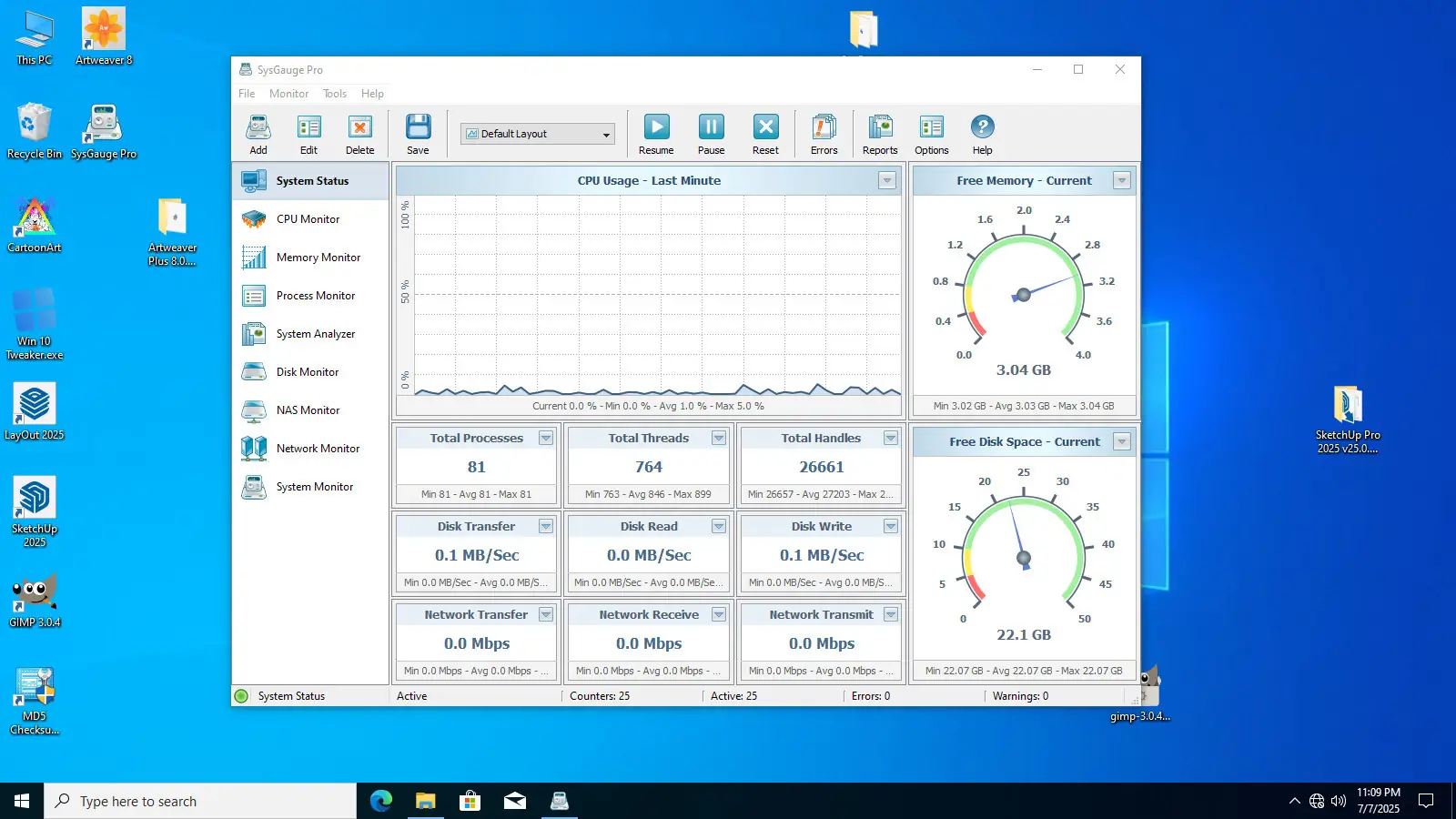 SysGauge — это мощная утилита для мониторинга производительности системы, позволяющая отслеживать ключевые параметры компьютера в режиме реального времени, включая загрузку процессора, использование оперативной памяти, состояние дисков, активность сети и работу запущенных процессов. Программа предоставляет расширенные возможности анализа и визуализации системных ресурсов, поддерживает удалённый мониторинг и формирование отчётов в различных форматах. Инструмент подходит как для локального контроля за состоянием ПК, так и для администрирования сетевых устройств.