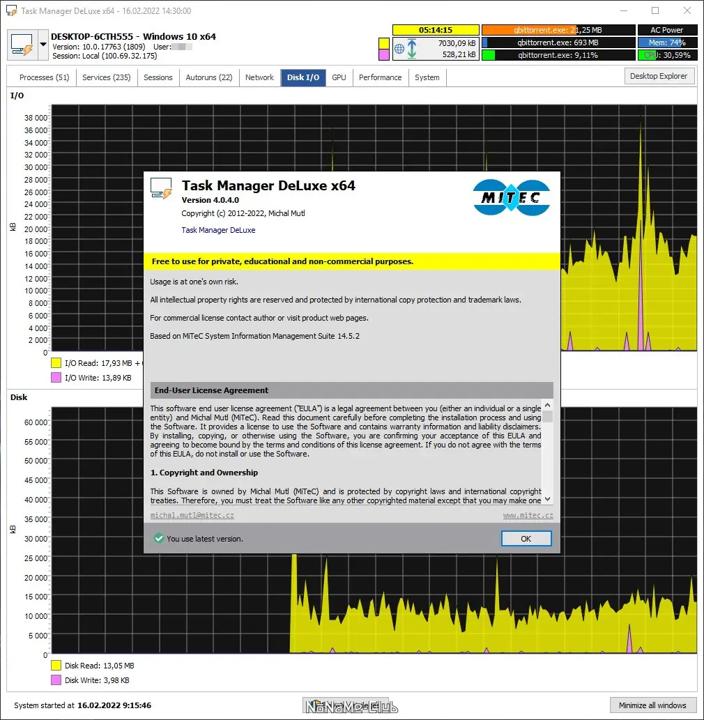 Программа доступна для бесплатного использования и подходит для диагностики, администрирования и оптимизации системы. Её компактный размер и отсутствие зависимости от установки делают её идеальным выбором для тех, кто часто работает с разными компьютерами. Поддержка русского языка и совместимость с актуальными версиями Windows позволяют использовать утилиту без дополнительной настройки. Task Manager DeLuxe можно использовать как альтернативу стандартному диспетчеру задач с расширенными возможностями.