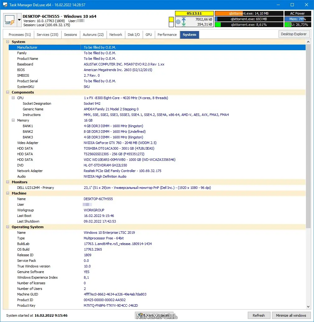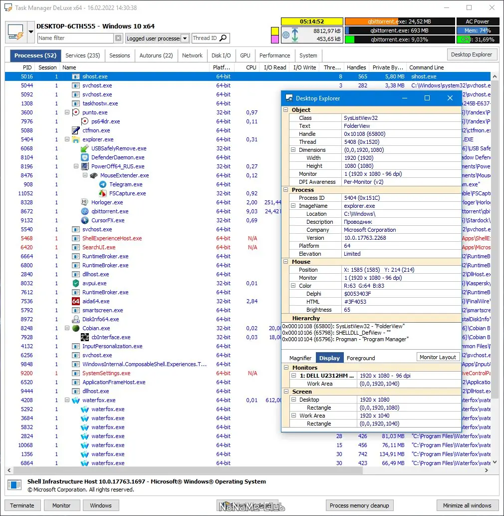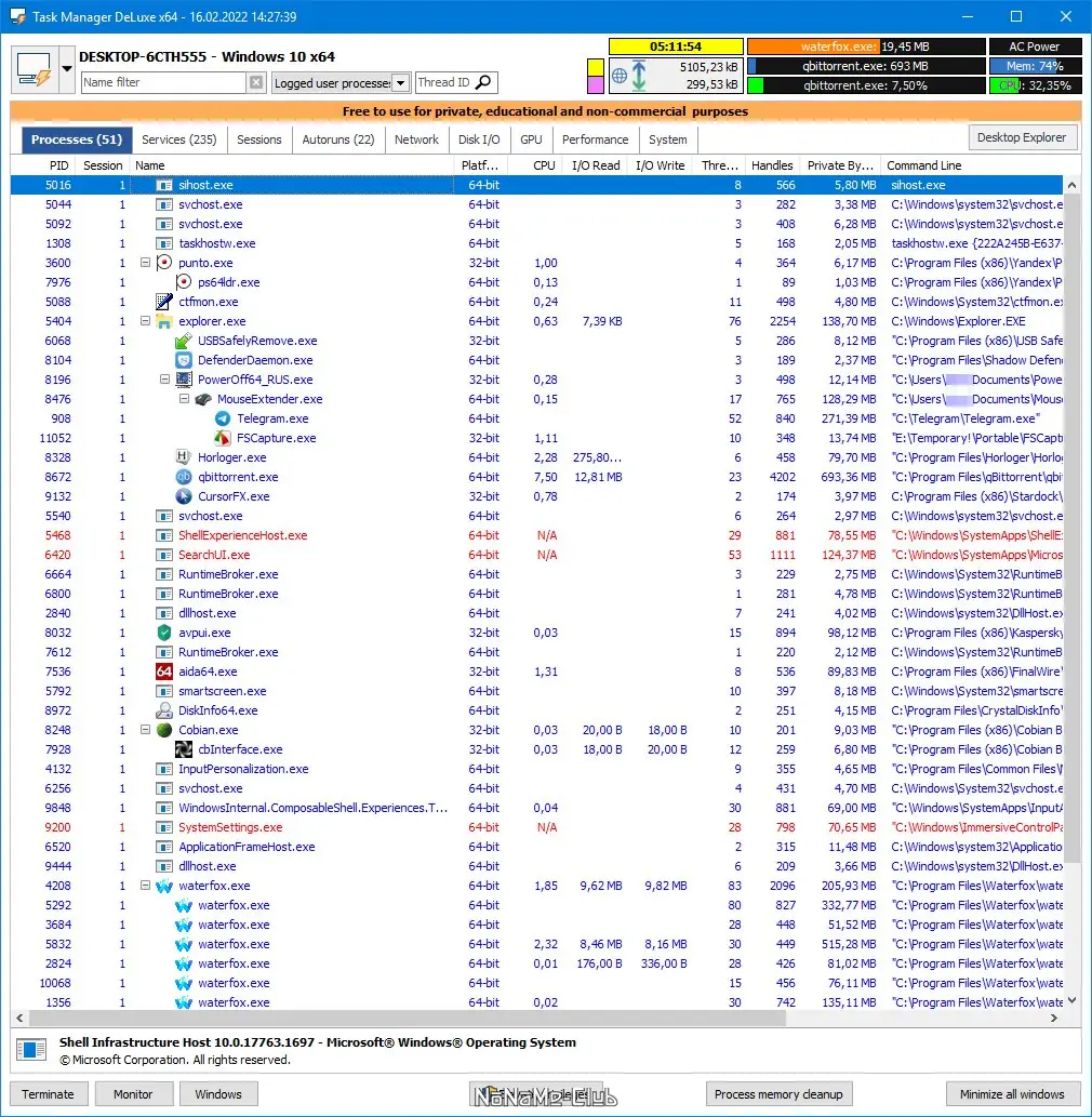 Task Manager DeLuxe представляет собой портативное приложение, ориентированное на пользователей, которым требуется глубокий контроль над системой без необходимости в сложных настройках или сторонних модулях. Программа разработана для быстрого доступа к ключевым компонентам системы, включая процессы, службы, сеансы пользователей и параметры автозагрузки. Её интерфейс интуитивно понятен, а функционал охватывает как базовые, так и расширенные задачи администрирования.