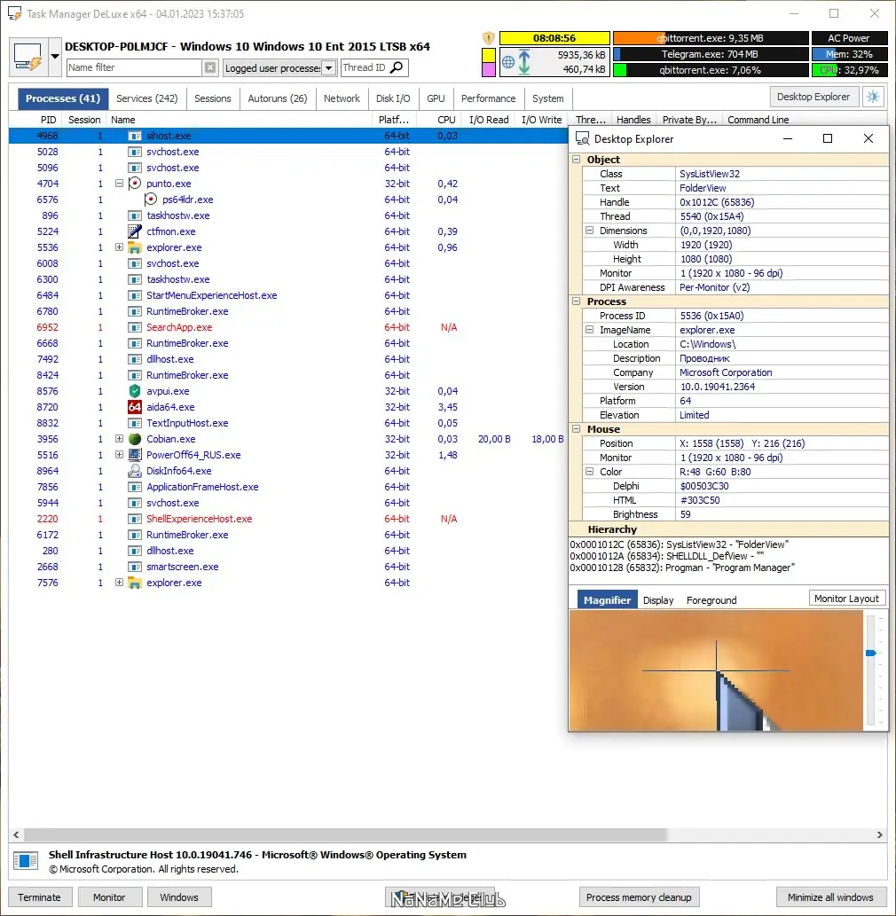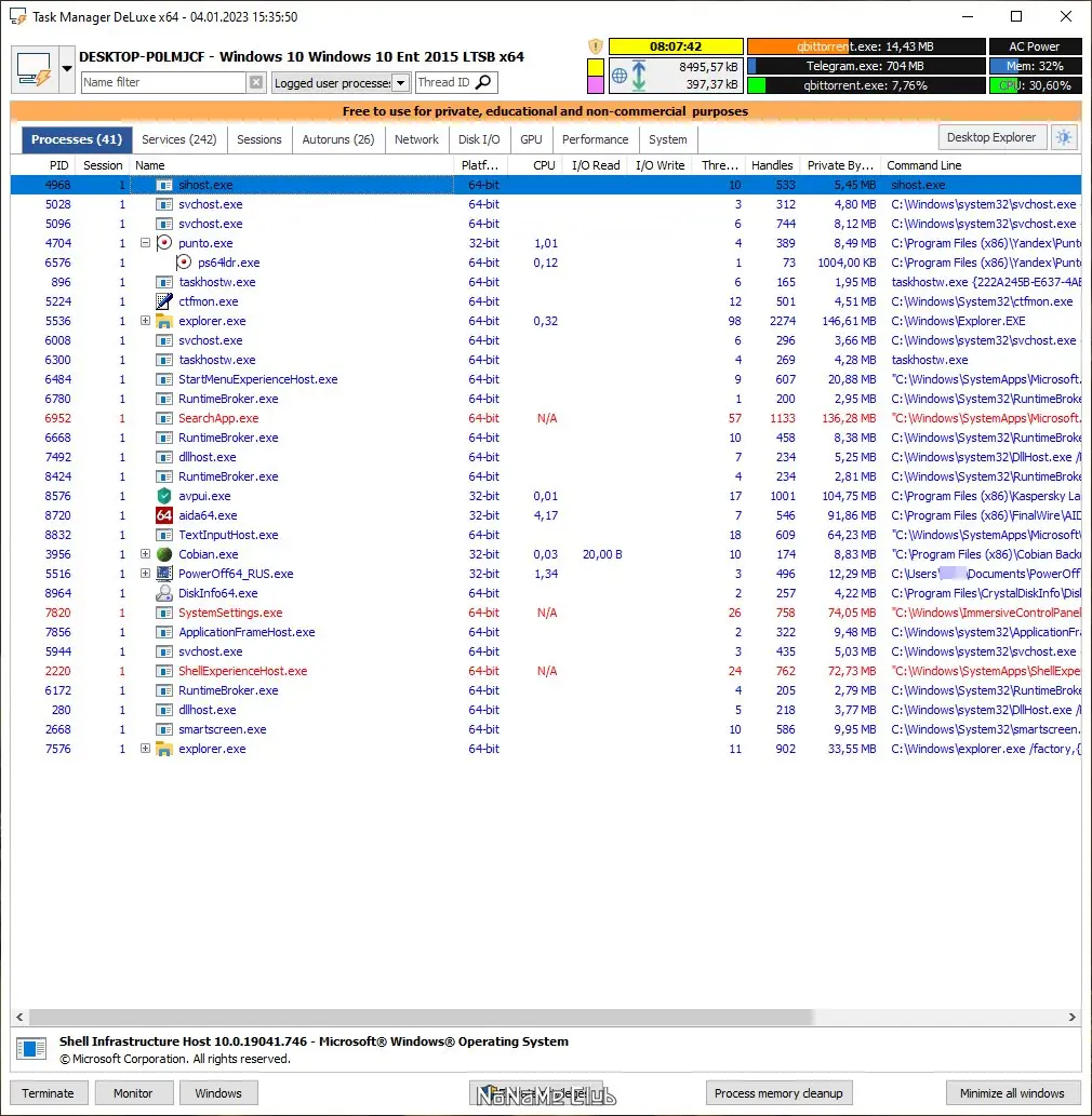 Task Manager DeLuxe — это расширенная утилита для детального анализа и контроля системных процессов, служб, автозагрузки и сетевой активности. Программа работает в портативном режиме, не требует установки и предоставляет максимум информации о состоянии компьютера в реальном времени, включая температуру процессора, использование GPU и журнал сеансов.
