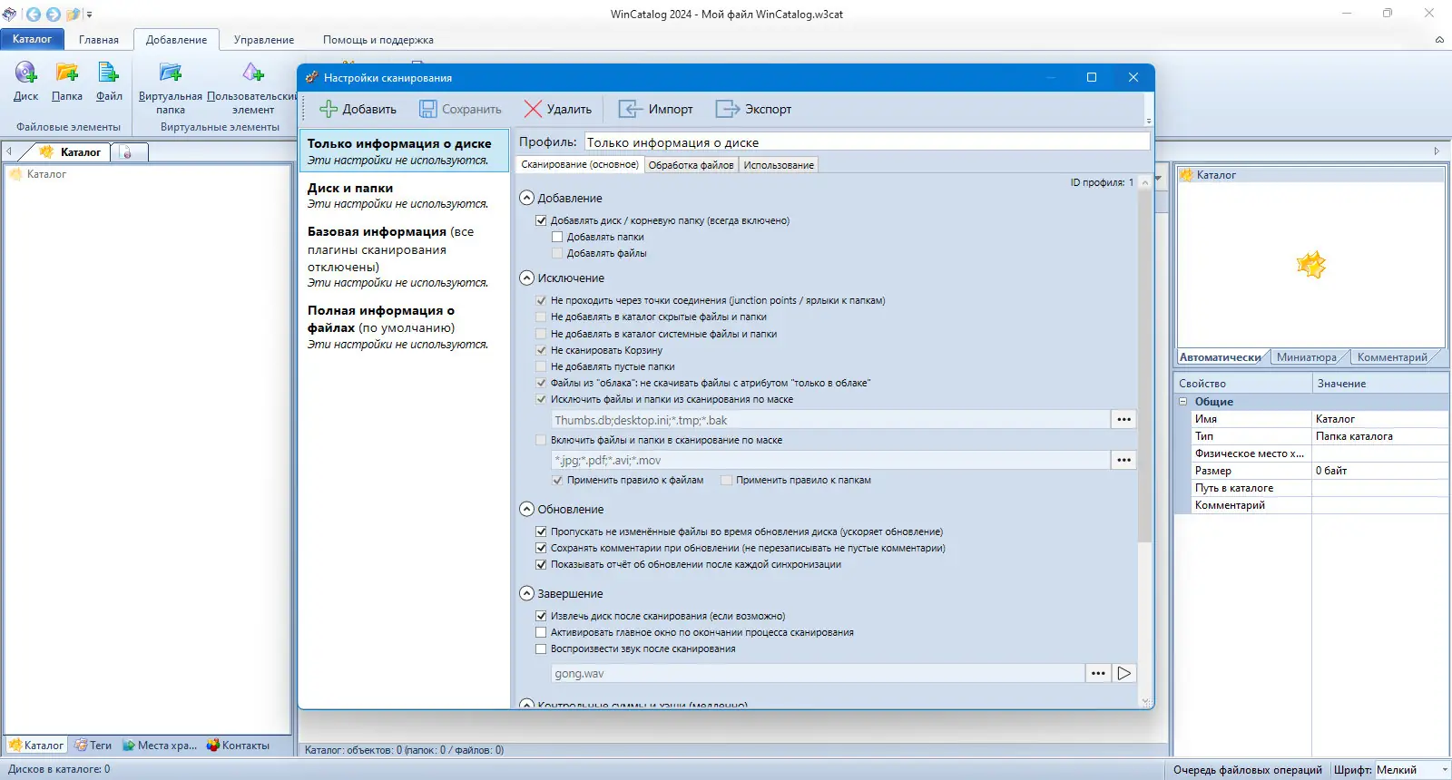 WinCatalog — это удобный инструмент для создания электронных каталогов дисков, файлов и папок, позволяющий быстро находить нужные данные без необходимости физического подключения носителей. Программа индексирует содержимое дисков, сканирует архивы, извлекает метаданные из музыкальных и видеофайлов, поддерживает работу с аудиокомпакт-дисками и ведёт учёт переданных диском. Благодаря интуитивному интерфейсу и расширенным возможностям поиска, WinCatalog экономит время при управлении цифровыми коллекциями.