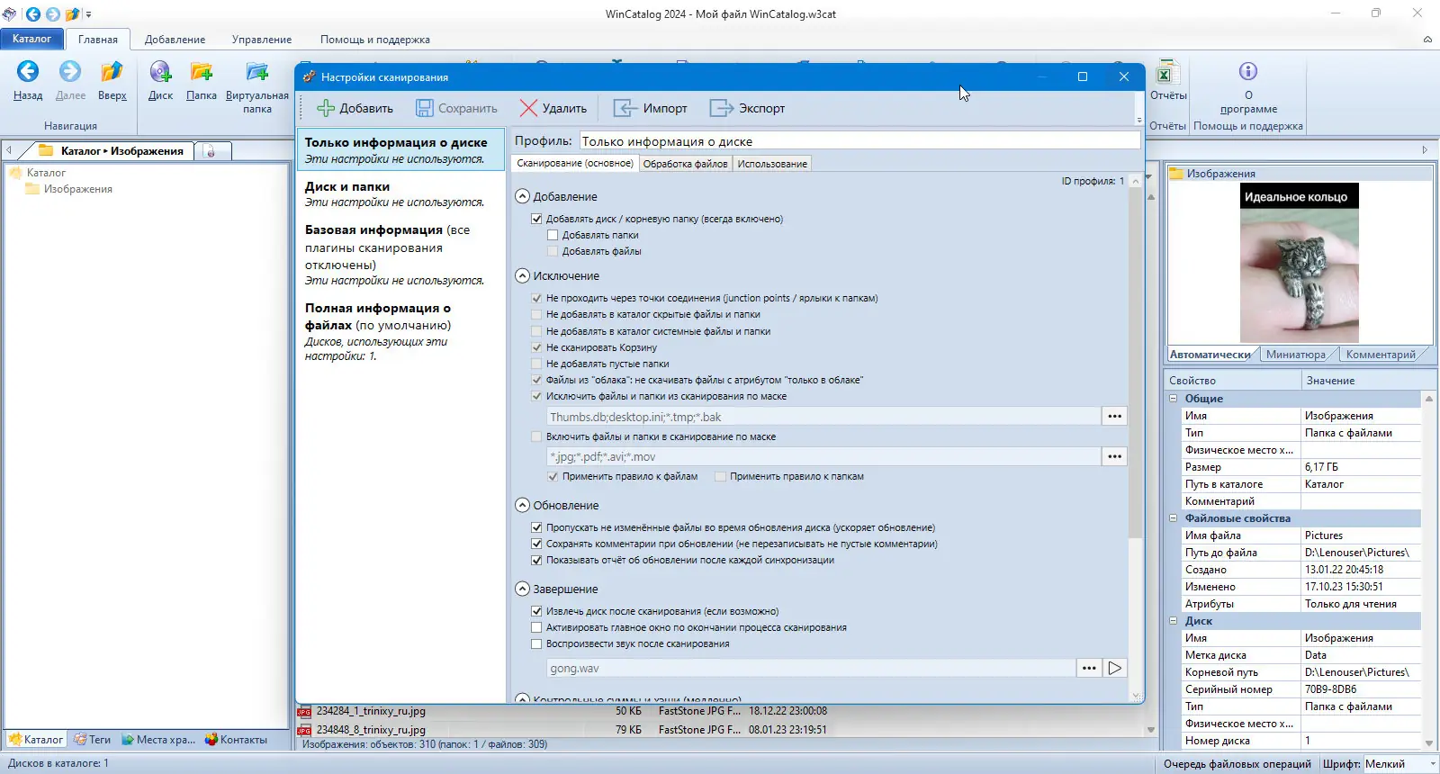 WinCatalog — это удобное приложение для систематизации файлов, папок и дисков, позволяющее быстро находить нужные данные без необходимости физического подключения носителей. Программа сканирует содержимое дисков, архивов и папок, сохраняя информацию в компактном каталоге, и поддерживает извлечение метаданных из аудио- и видеофайлов. С её помощью можно отслеживать, у кого находятся диски, искать файлы по ключевым словам, комментариям и расширениям, а также экспортировать данные для работы в других приложениях. Версия 2024 года предлагает улучшенную логику поиска и расширенную обработку медиафайлов.