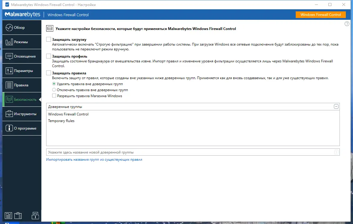 - Поддержка импорта и экспорта правил позволяет быстро переносить настройки между компьютерами.