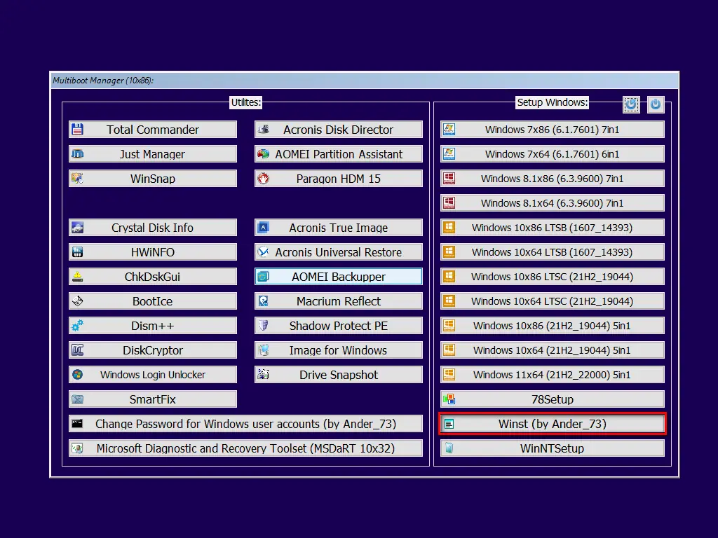 Multiboot Collection Full — это продуманная система, объединяющая множество полезных компонентов на одном загрузочном носителе. Он создан для тех, кто регулярно работает с компьютерами: системным администраторам, специалистам по ремонту техники, IT-энтузиастам. В основе лежит возможность установки Windows 7–11 с предварительно интегрированными обновлениями, драйверами и настройками. Кроме того, сборник включает средства диагностики, восстановления данных, утилиты для сброса паролей и инструменты автоматической установки программного обеспечения. Архитектура построена так, что каждый модуль автономен, а меню загрузки автоматически адаптируется под наличие или отсутствие тех или иных компонентов.