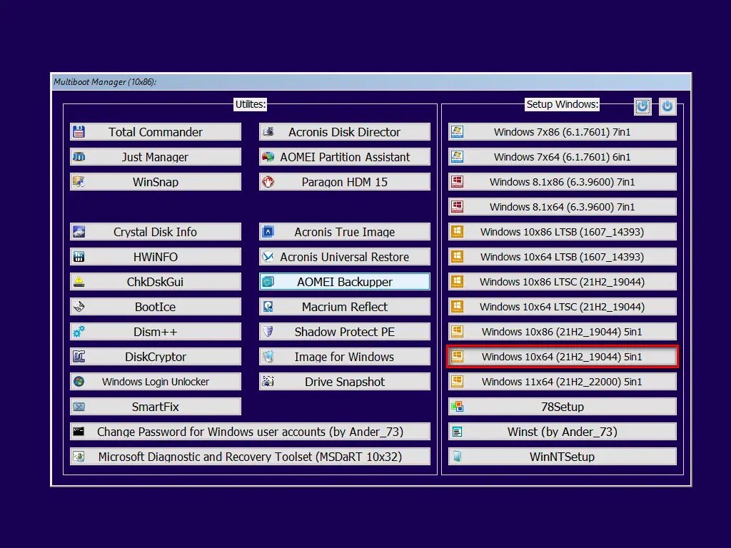 Multiboot Collection — это универсальный мультизагрузочный инструмент, объединяющий в себе средства установки операционных систем, восстановления данных, диагностики оборудования и обслуживания компьютера. Сборник поддерживает загрузку через BIOS и UEFI, включает актуальные версии Windows 7–11, драйверы, утилиты для автоматической настройки и обновления системы. Архитектура построена так, что каждый компонент автономен и может быть заменён или удалён без потери работоспособности остального содержимого.