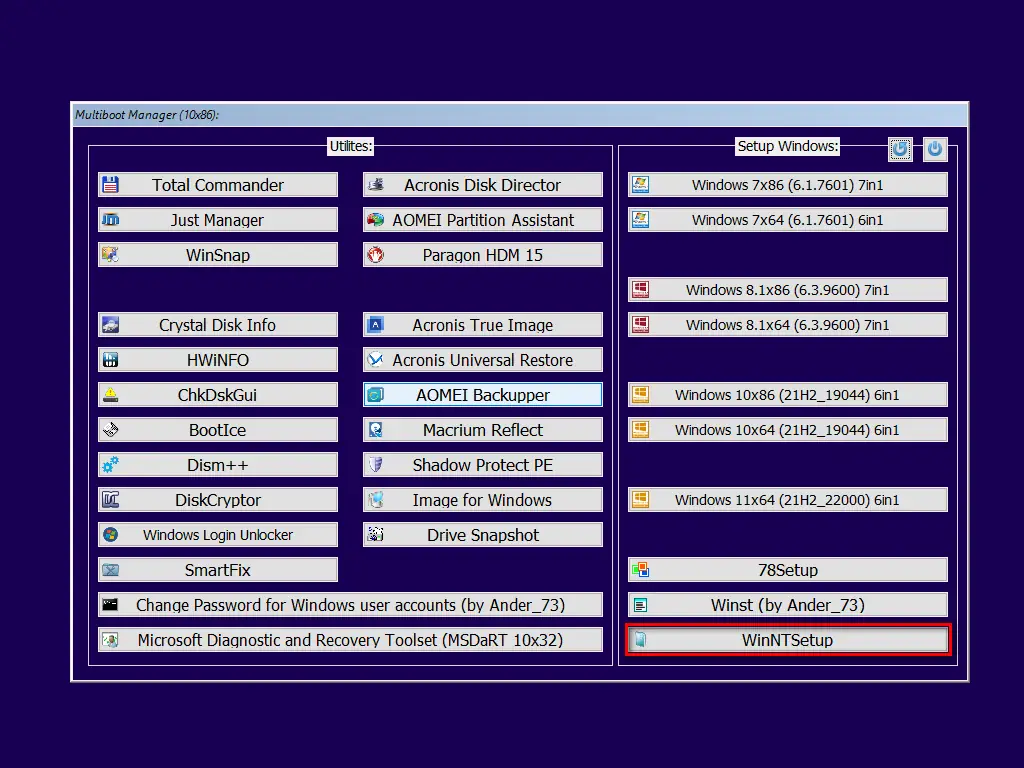 Multiboot Collection — это универсальный мультизагрузочный сборник, предназначенный для установки, настройки и восстановления операционных систем Windows 7–11, а также для диагностики и ремонта компьютера. Включает в себя полный набор инструментов: установочные образы, утилиты, драйверы, средства восстановления и автоматизированного развёртывания программного обеспечения. Поддерживает режимы Legacy BIOS и UEFI, работает с флешками и USB-HDD объёмом до 64 ГБ.