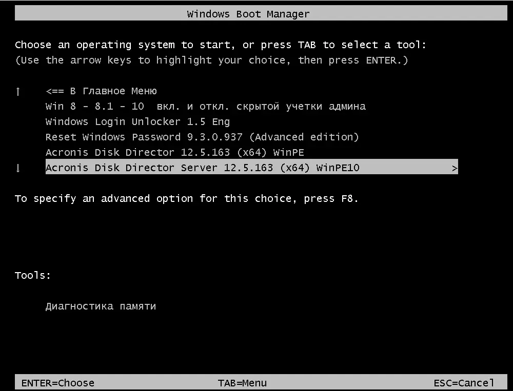 - Богатый набор утилит для диагностики, резервного копирования и сброса паролей