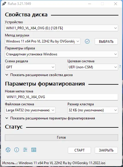 Работа с Rufus