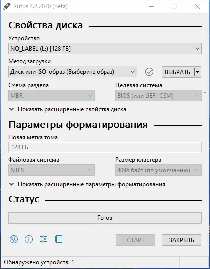 Работа с Rufus