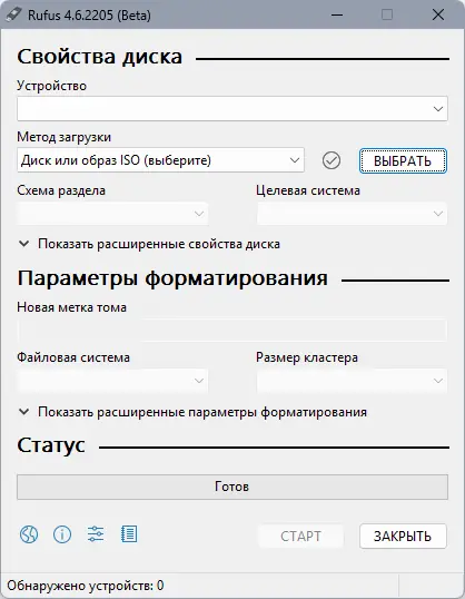 Rufus представляет собой инструмент, предназначенный для форматирования и настройки съёмных носителей с возможностью загрузки. Он идеально подходит для создания установочных флешек с различными операционными системами и утилитами. Программа не требует инсталляции и может запускаться напрямую с любого носителя.