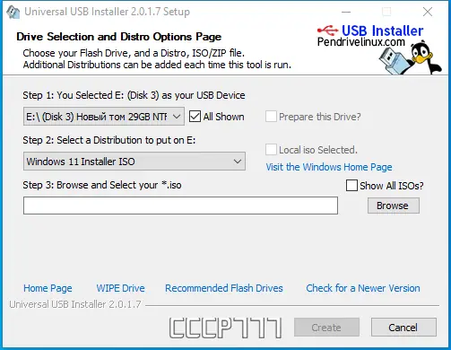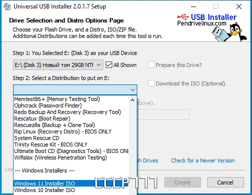 Работа с Universal USB Installer